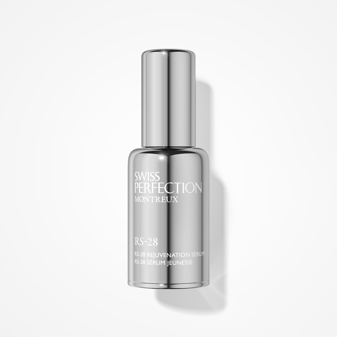 RS-28 Rejuvenation Serum Advanced is the result of 28 years of Swiss cellular science. At its core lies the revolutionary IRISA® Exosome Technology, internationally patented and 19× more concentrated than the original formula. These potent bio-actives are engineered to communicate directly with skin cells, reprogramming skin at a cellular level to visibly reverse signs of aging.